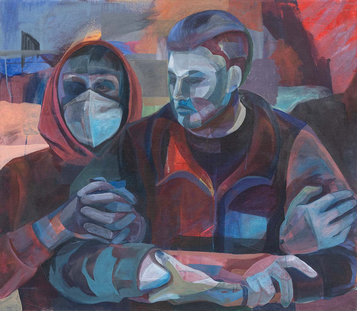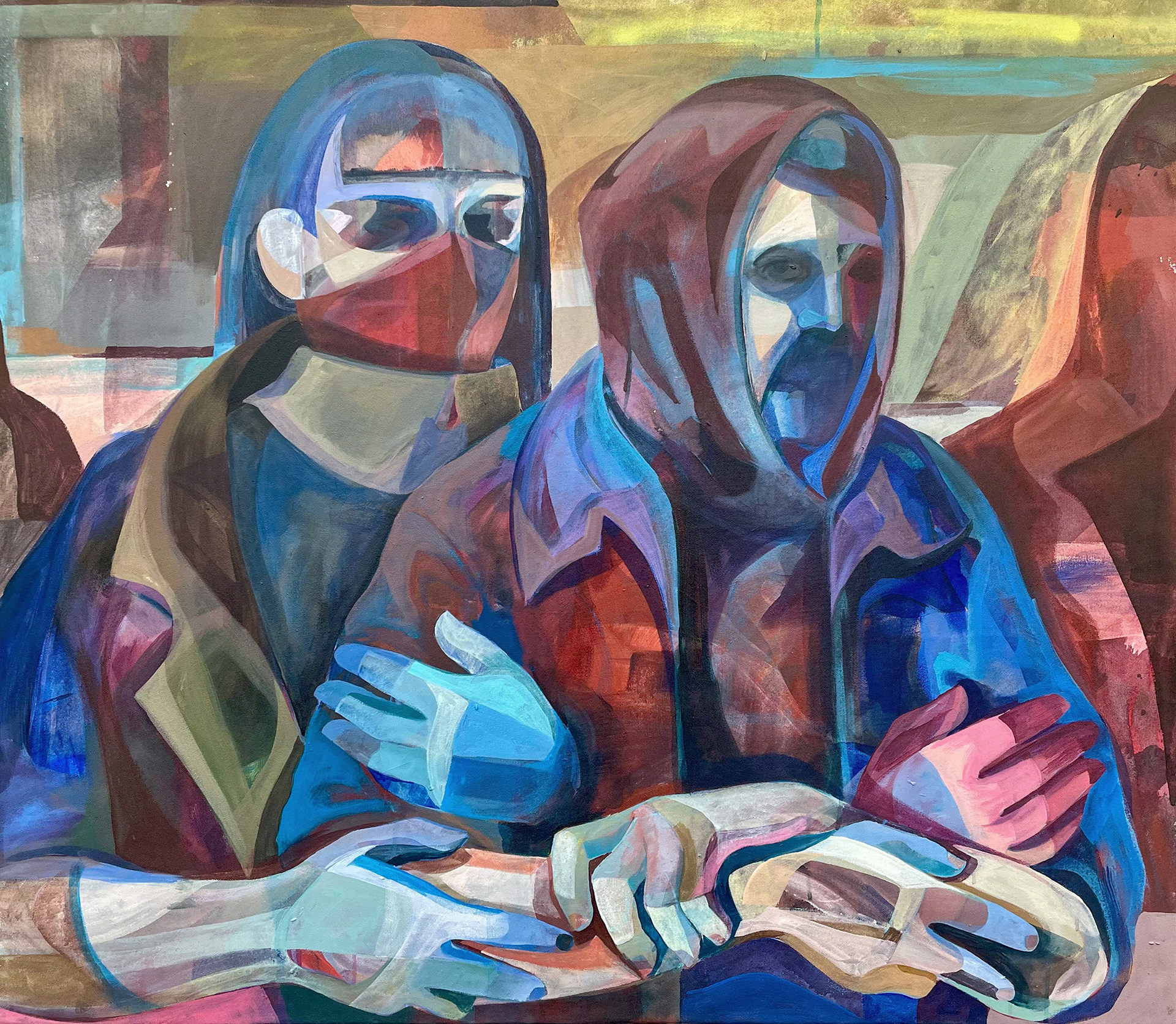 zu Besuch, 200x150cm, Öl und Acryl auf Leinwand, 2023